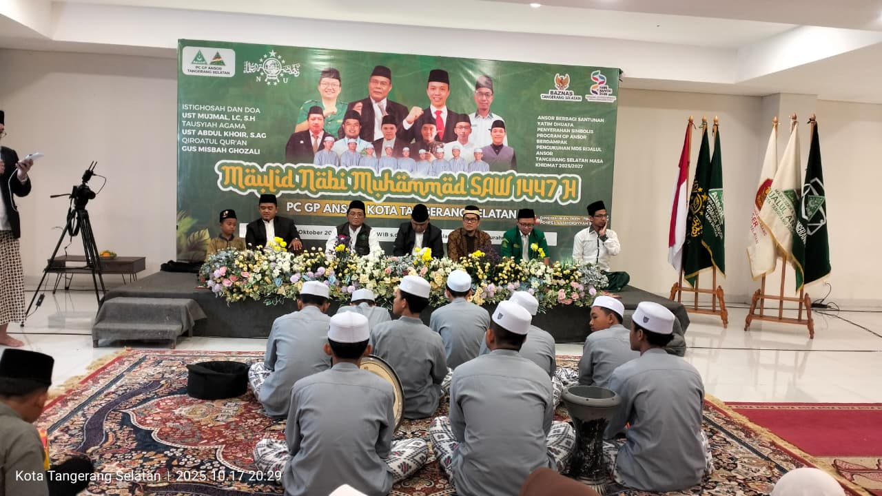 Dalam rangka memperingati Maulid Nabi Muhammad SAW 1447 H, Majelis Dzikir dan Sholawat Rijalul Ansor Kota Tangerang Selatan menggelar acara “Semarak Maulid Nabi Muhammad SAW & Halaqah Ulama Muda Kota Tangerang Selatan” pada Jumat, 17 Oktober 2025, bertempat di Islamic Center Baiturrahmi, BSD City. Kegiatan yang berlangsung penuh hikmah dan kebersamaan ini dihadiri oleh para tokoh agama, ulama muda, serta lembaga sosial dan keagamaan di wilayah Tangerang Selatan. Salah satu yang turut hadir dan berpartisipasi aktif dalam kegiatan ini adalah Badan Amil Zakat Nasional (BAZNAS) Kota Tangerang Selatan.