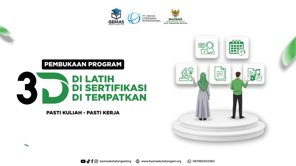 Dalam upaya memperluas akses pendidikan dan menciptakan kemandirian ekonomi masyarakat, BAZNAS Kota Tangerang Selatan bekerja sama dengan PT. INAKAZ Citraniaga Intranasional melalui Program GEMAS (Generasi Mandiri Studi). Kolaborasi ini hadir untuk memberikan kesempatan nyata bagi generasi muda Tangsel agar dapat meraih pendidikan tinggi sekaligus memasuki dunia kerja dengan kompetensi yang siap bersaing.
